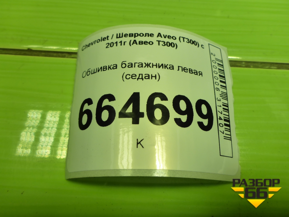 Обшивка багажника левая (седан) для Chevrolet Aveo (Т300) с 2011г (Авео Т300) в Уфе