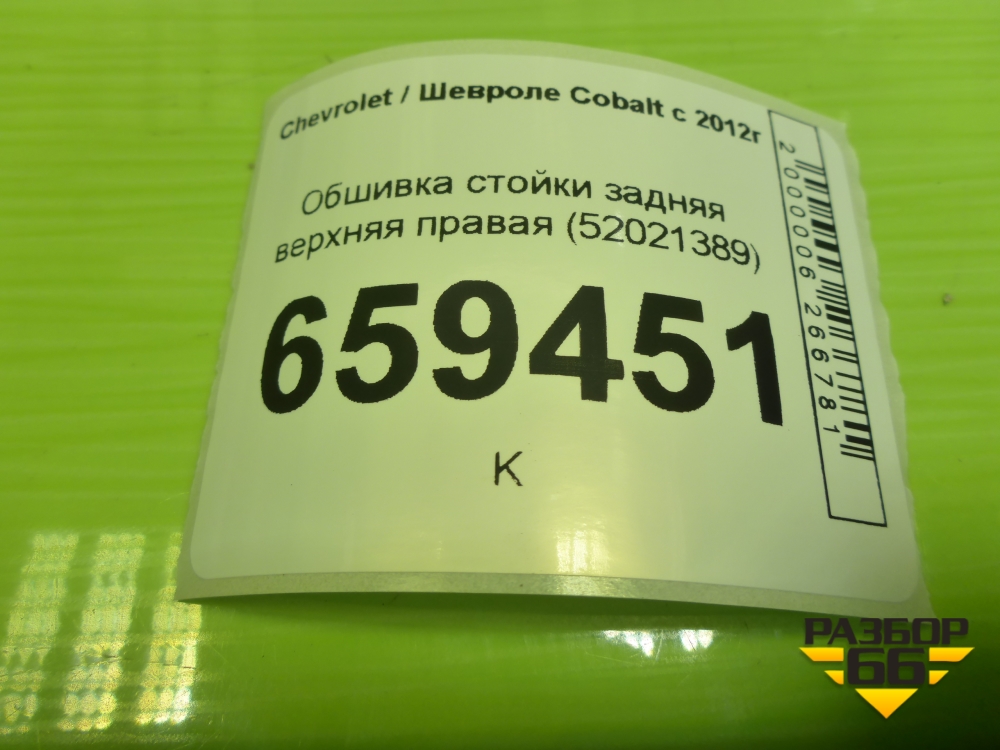Обшивка стойки задняя верхняя правая (52021389) для Chevrolet Cobalt с 2012г (Кобальт) в Уфе