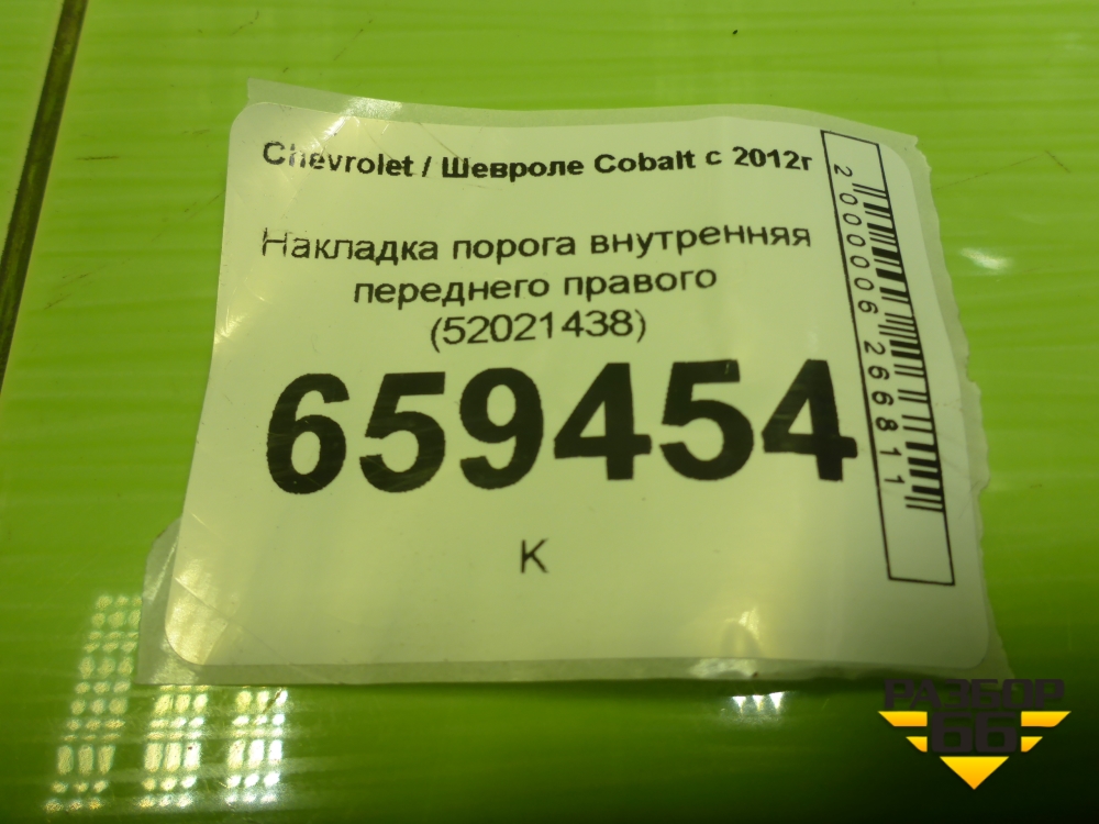 Накладка порога внутренняя переднего правого (52021438) для Chevrolet Cobalt с 2012г (Кобальт) в Уфе