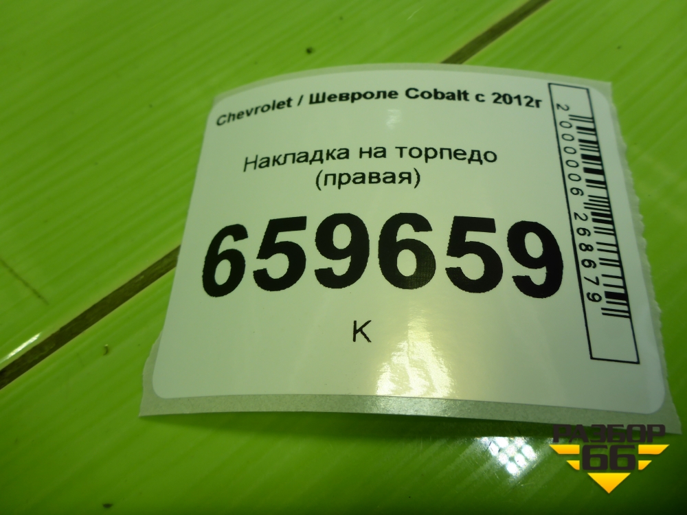Накладка на торпедо (правая) для Chevrolet Cobalt с 2012г (Кобальт) в Уфе