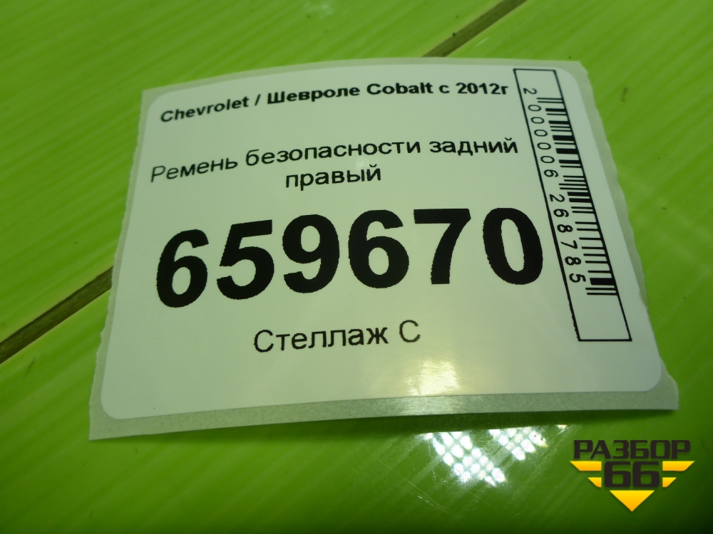 Ремень безопасности задний правый (52028429) для Chevrolet Cobalt с 2012г (Кобальт) в Уфе