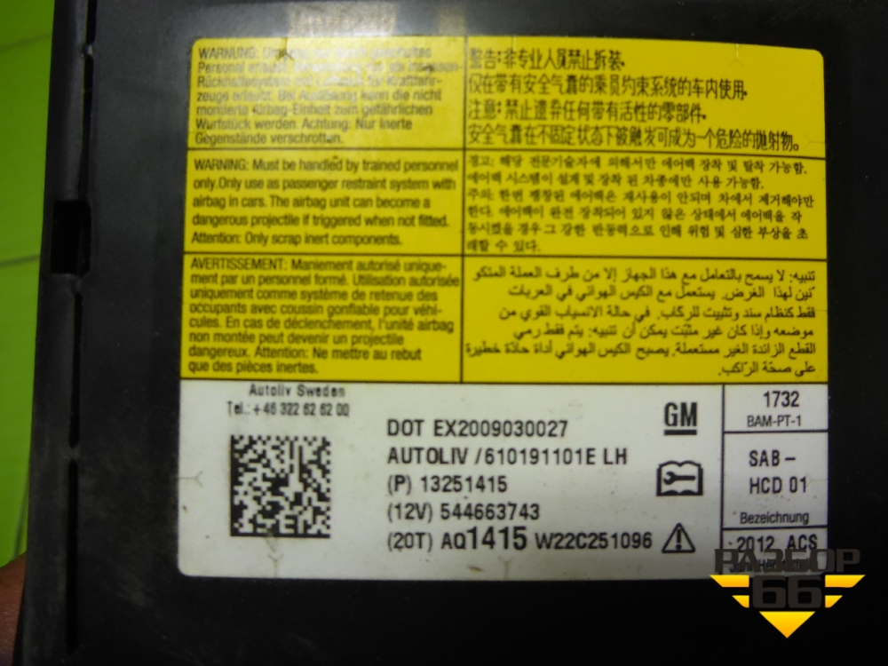 Подушка безопасности в сиденье (левая) (13251415) для Chevrolet Cruze c 2009-2015г (Круз) в Уфе