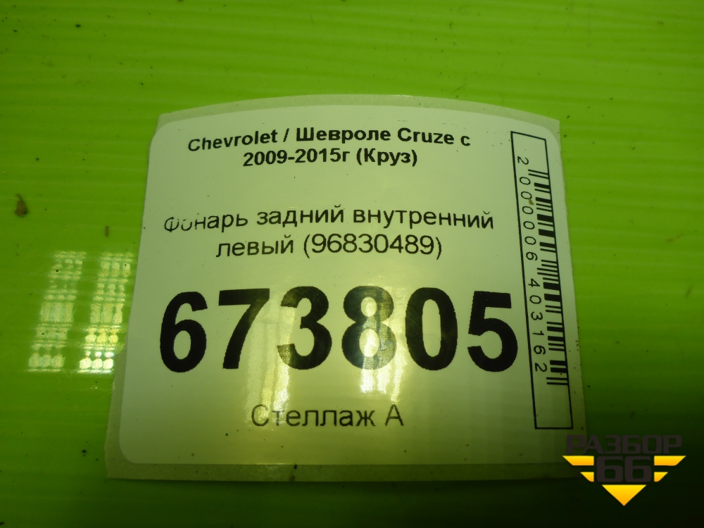 Фонарь задний внутренний левый (седан) (96830489) для Chevrolet Cruze c 2009-2015г (Круз) в Уфе