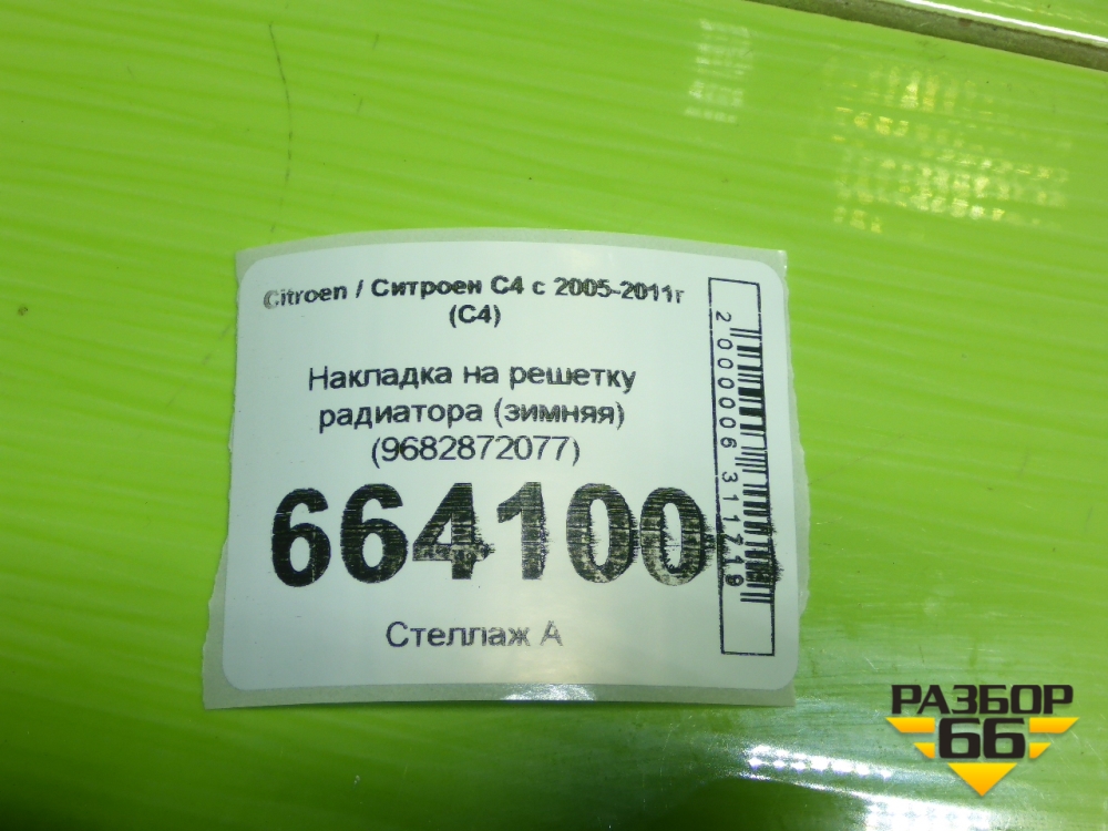 Накладка на решетку радиатора (зимняя) (9682872077) для Citroen C4 с 2005-2011г (С4) в Уфе