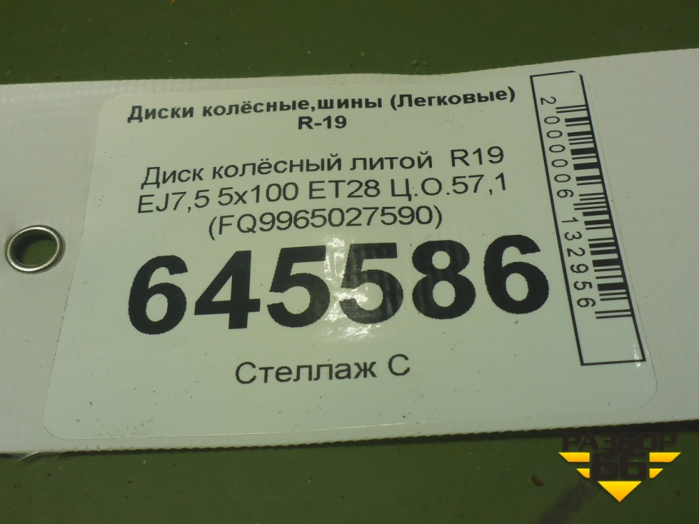 Диск колёсный литой R19 EJ7,5 5x100 ET28 Ц.О.57,1 (FQ9965027590) в Уфе