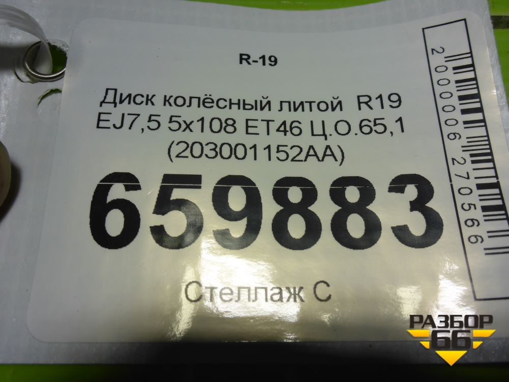 Диск колёсный литой R19 EJ7,5 5x108 ET46 Ц.О.65,1 (203001152AA) в Уфе