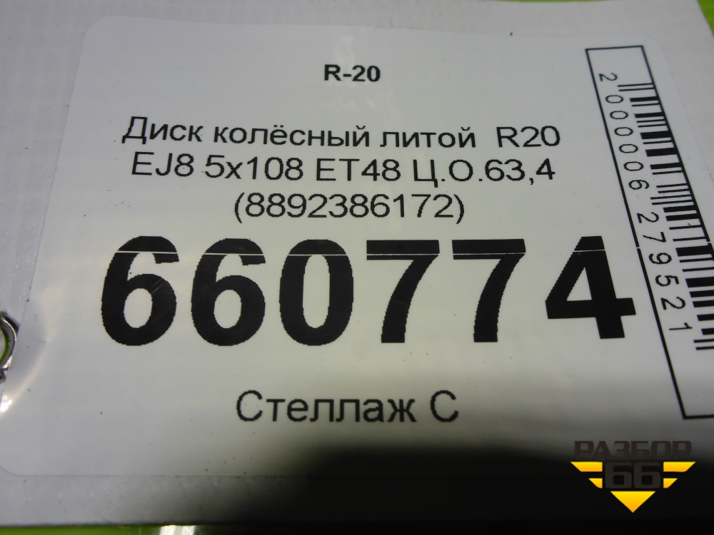 Диск колёсный литой R20 EJ8 5x108 ET48 Ц.О.63,4 (8892386172) в Уфе