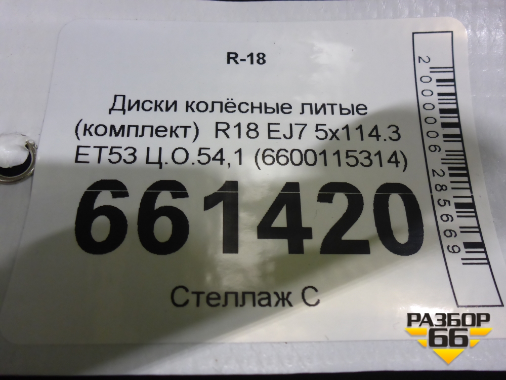 Диски колёсные литые (комплект) R18 EJ7 5x114.3 ET53 Ц.О.54,1 (6600115314) в Уфе