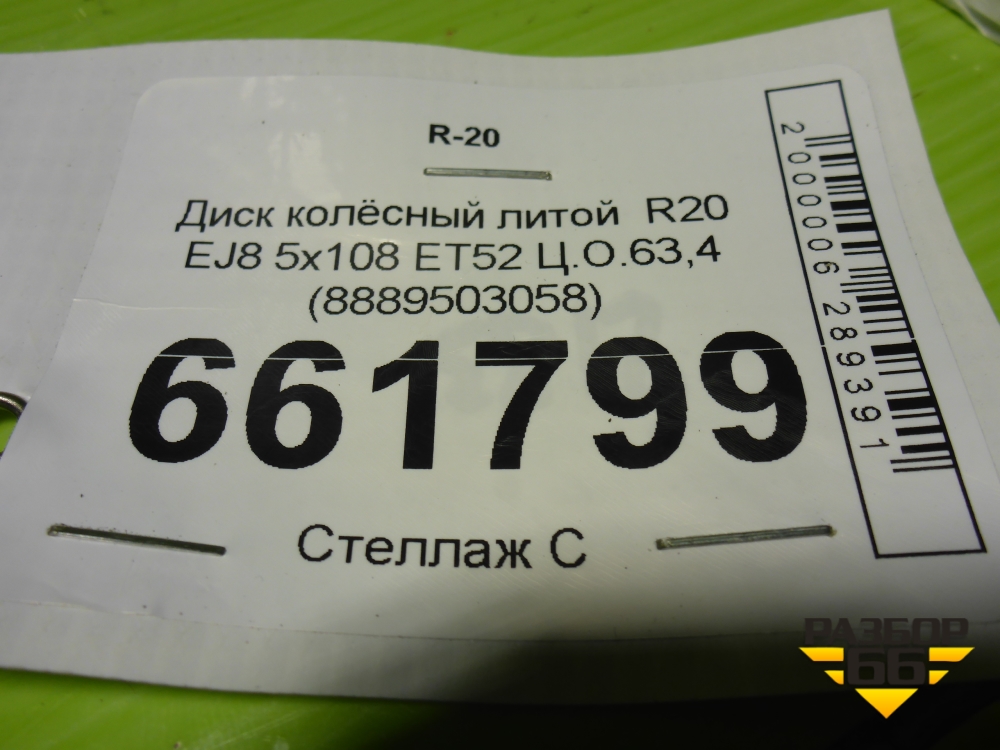 Диск колёсный литой R20 EJ8 5x108 ET52 Ц.О.63,4 (8889503058) в Уфе