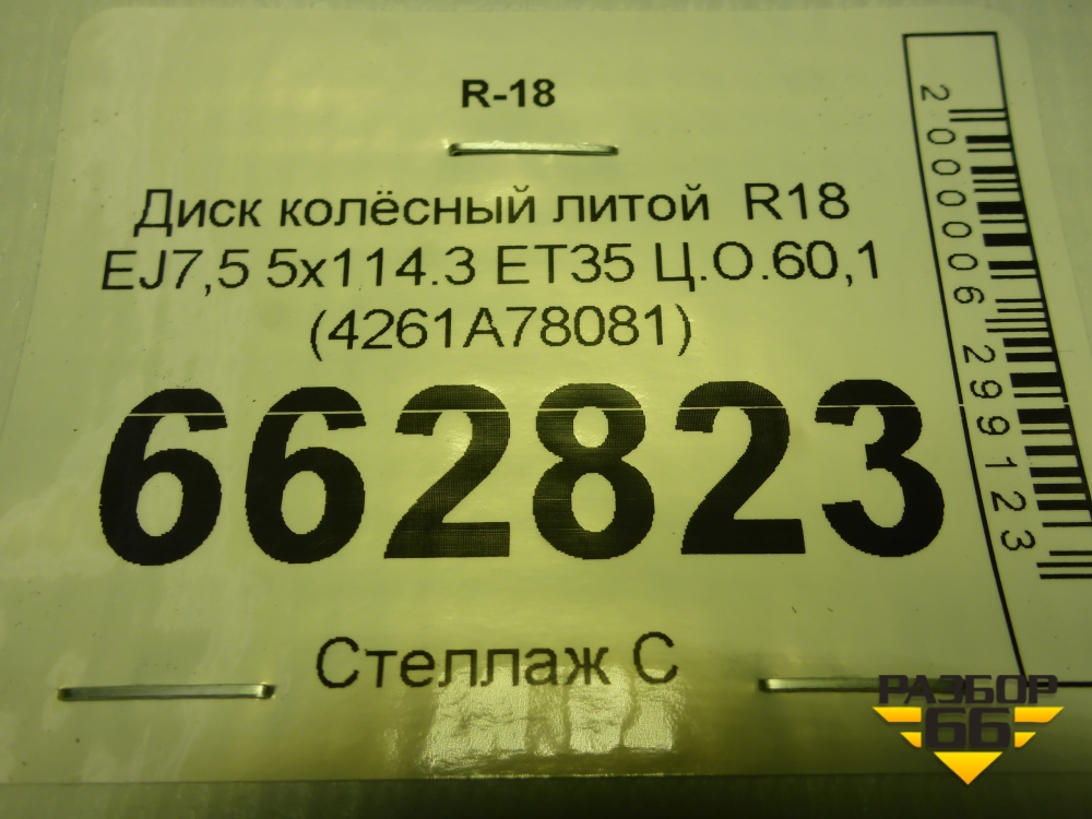 Диск колёсный литой R18 EJ7,5 5x114.3 ET35 Ц.О.60,1 (4261A78081) в Уфе