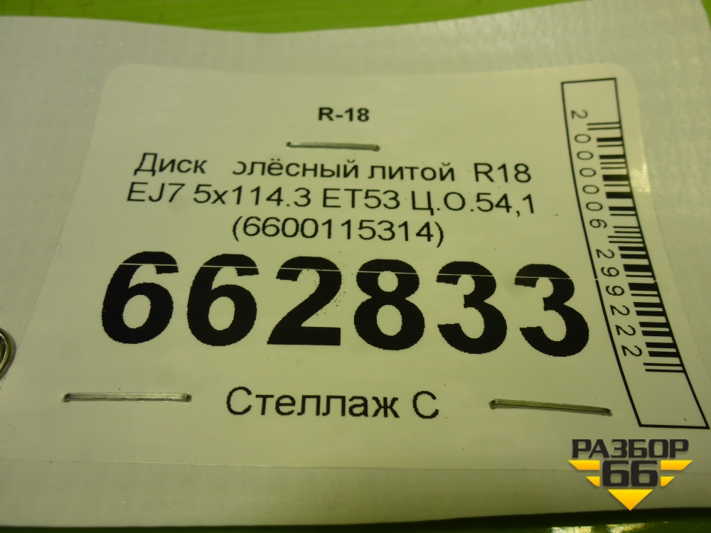 Диск колёсный литой R18 EJ7 5x114.3 ET53 Ц.О.54,1 (6600115314) в Уфе