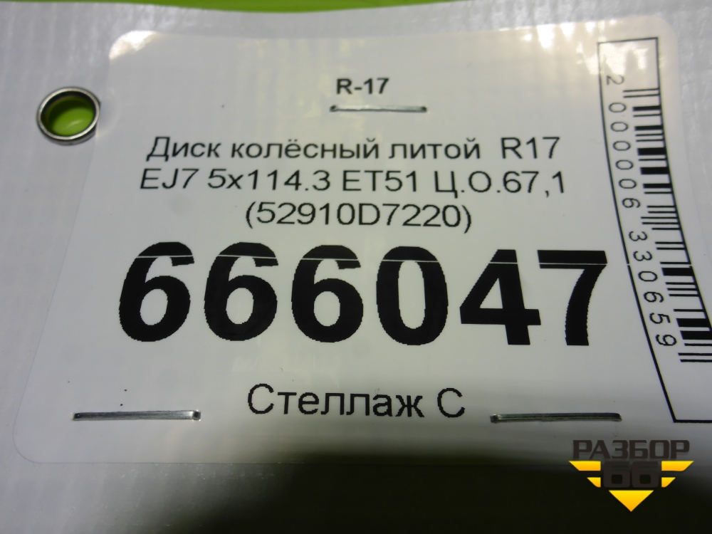 Диск колёсный литой R17 EJ7 5x114.3 ET51 Ц.О.67,1 (52910D7220) в Уфе