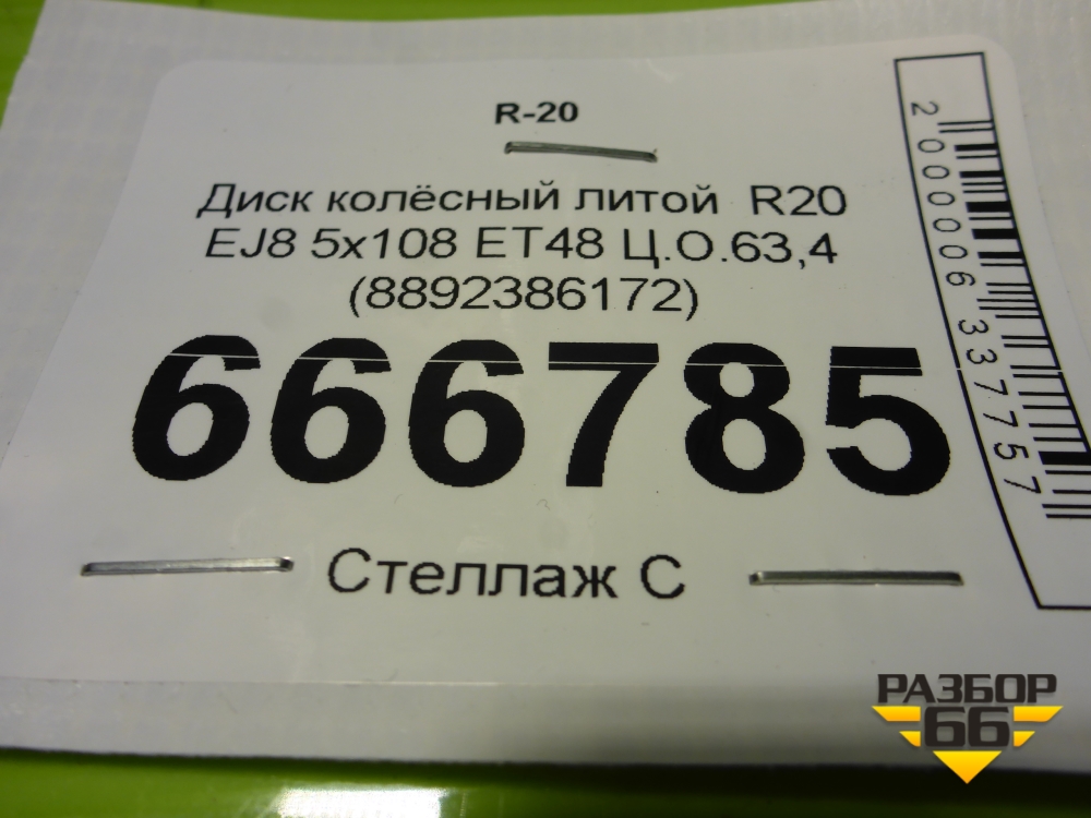 Диск колёсный литой R20 EJ8 5x108 ET48 Ц.О.63,4 (8892386172) в Уфе