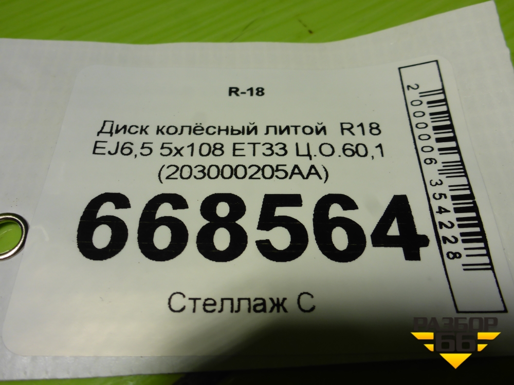 Диск колёсный литой R18 EJ6,5 5x108 ET33 Ц.О.60,1 (203000205AA) в Уфе