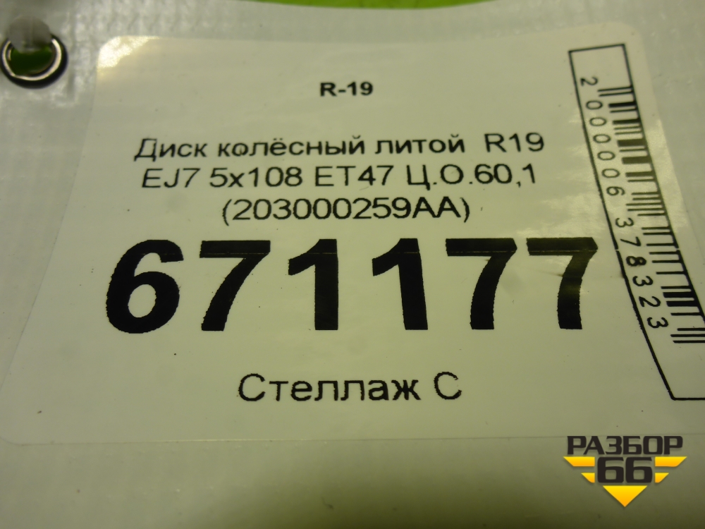 Диск колёсный литой R19 EJ7 5x108 ET47 Ц.О.60,1 (203000259AA) в Уфе