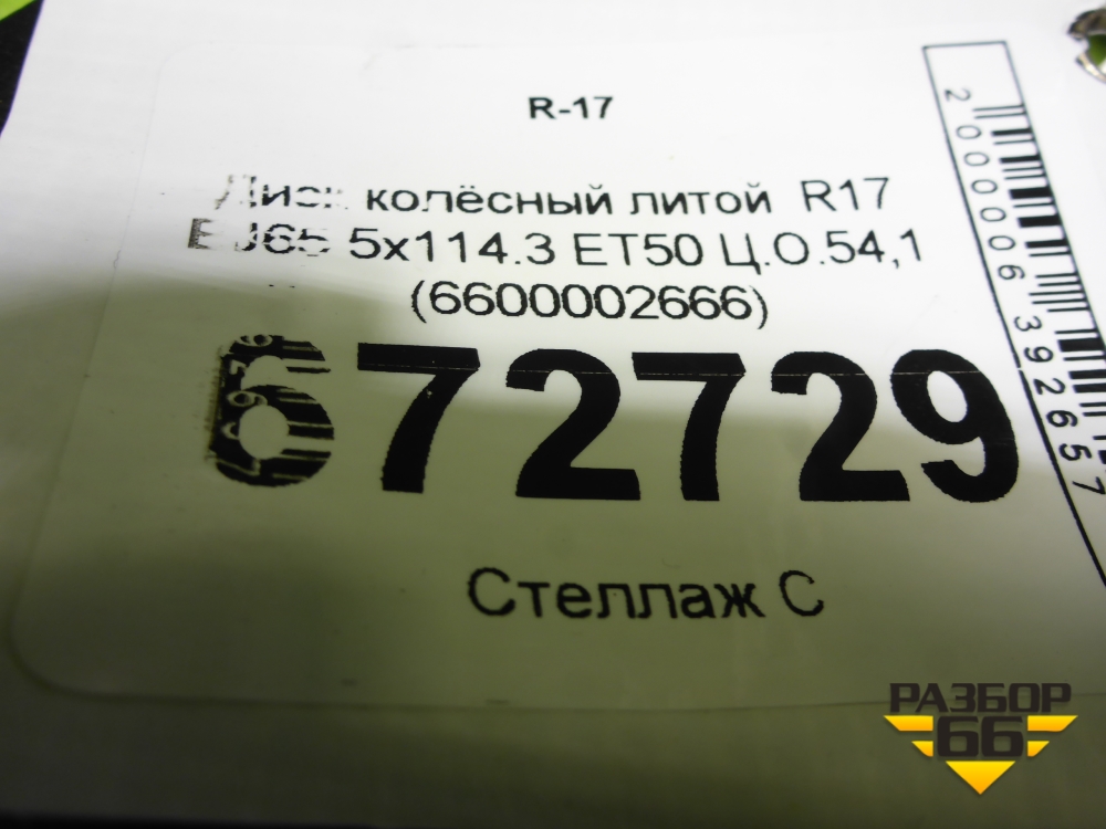 Диск колёсный литой R17 EJ65 5x114.3 ET50 Ц.О.54,1 (6600002666) в Уфе