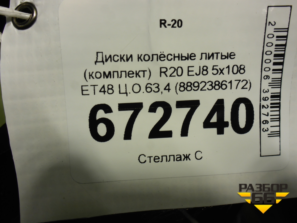 Диски колёсные литые (комплект) R20 EJ8 5x108 ET48 Ц.О.63,4 (8892386172) в Уфе