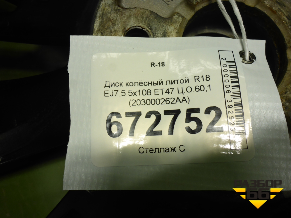 Диск колёсный литой R18 EJ7,5 5x108 ET47 Ц.О.60,1 (203000262AA) в Уфе