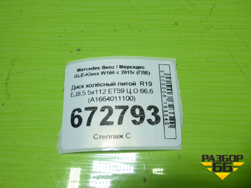Диск колёсный литой R19 EJ8,5 5x112 ET59 Ц.О.66,6 (A1664011100) в Уфе