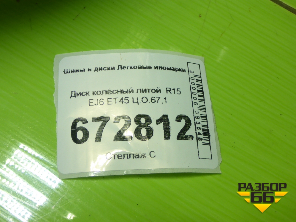 Диск колёсный литой R15 EJ6 4х100 ET45 Ц.О.67,1 в Уфе
