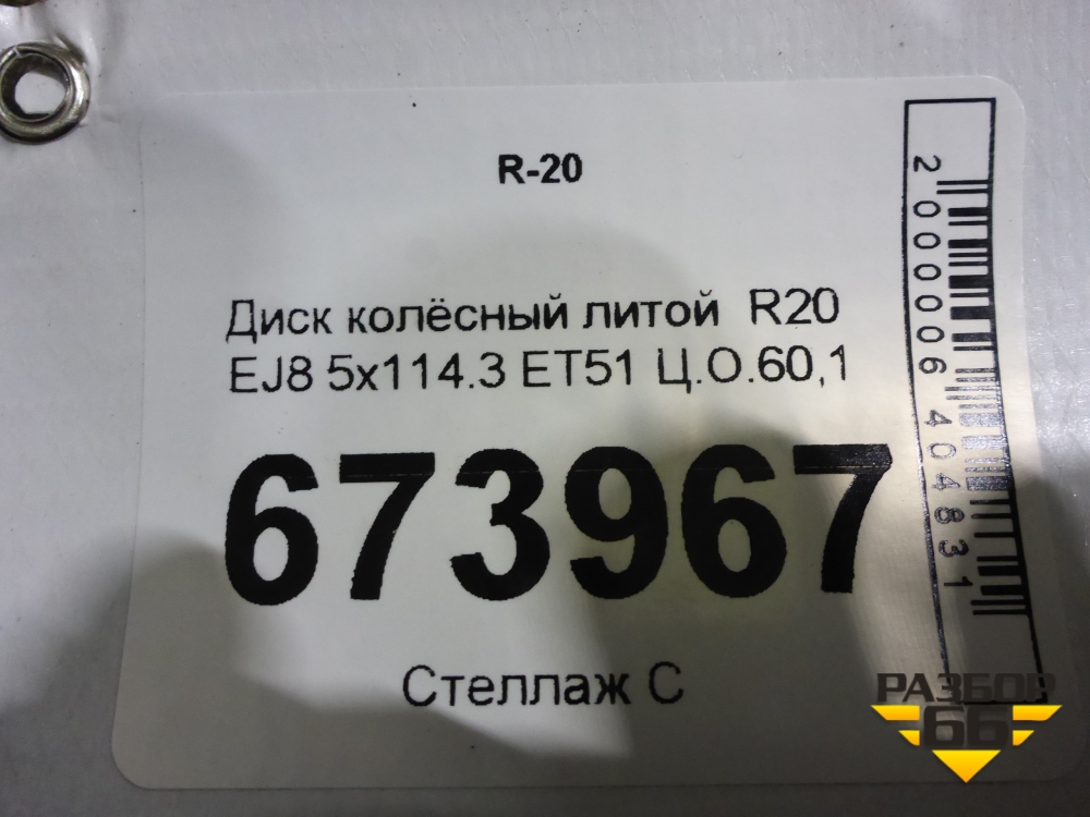 Диск колёсный литой R20 EJ8 5x114.3 ET51 Ц.О.60,1 в Уфе