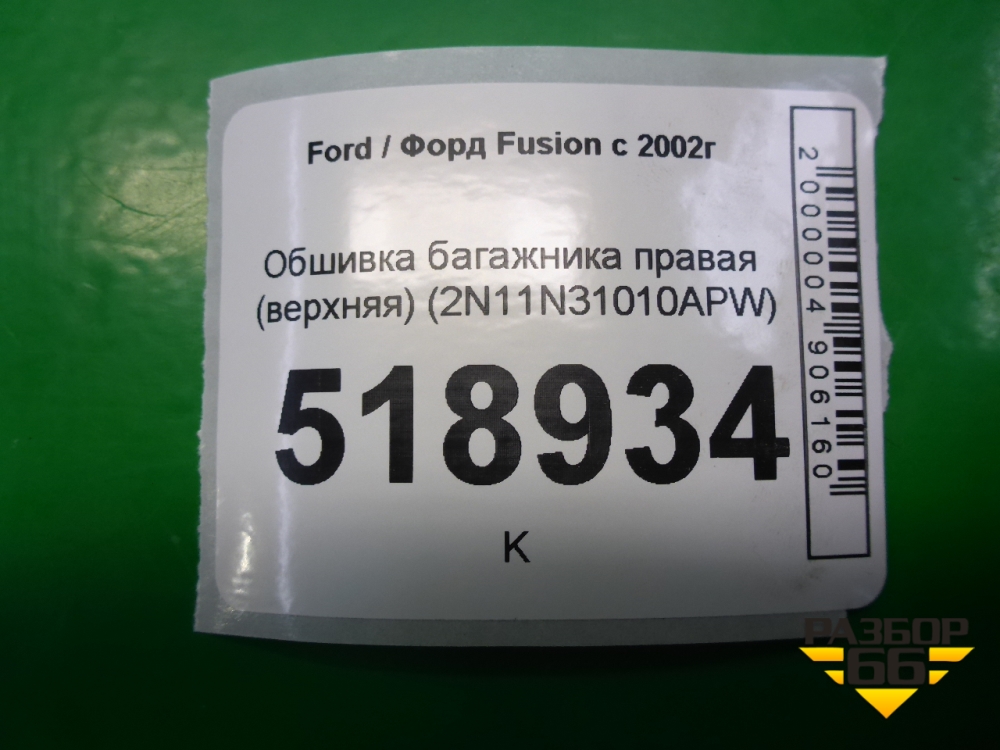 Обшивка стойки задняя верхняя правая (2N11N31010APW) для Ford Fusion с 2002г (Фьюжн) в Уфе