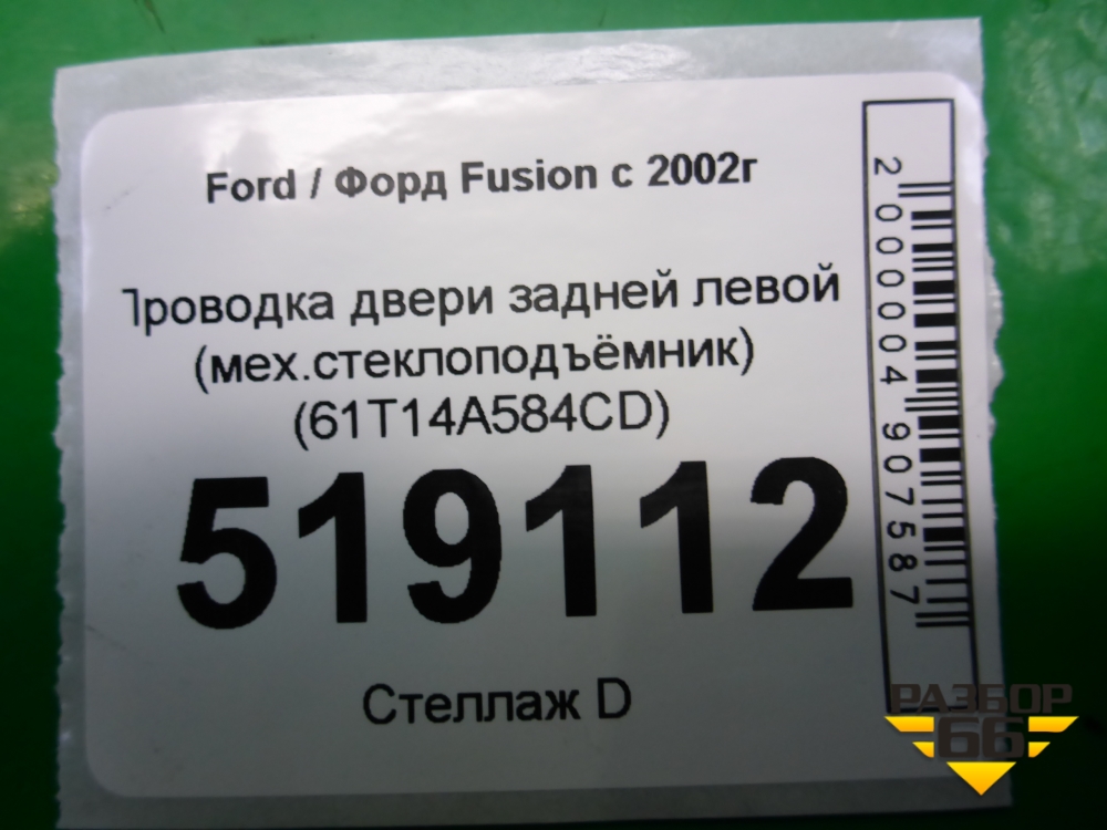 Проводка двери задней левой (мех.стеклоподъёмник) (6N1T14A584CD) для Ford Fusion с 2002г (Фьюжн) в Уфе
