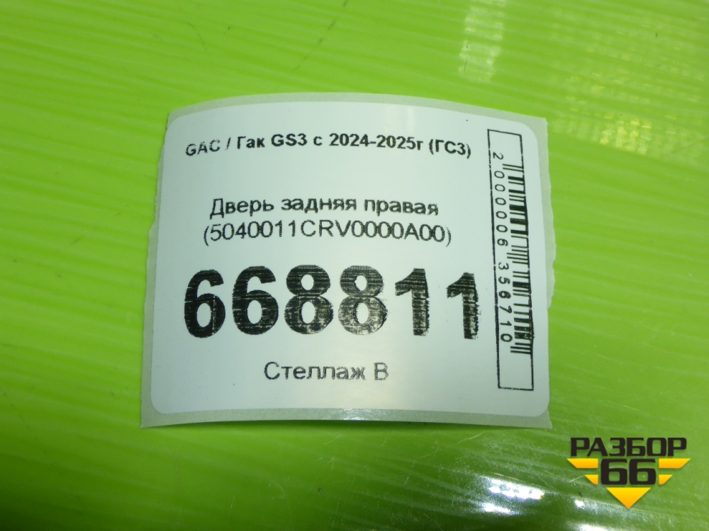 Дверь задняя правая (5040011CRV0000A00) для GAC GS3 с 2024-2025г (ГС3) в Уфе