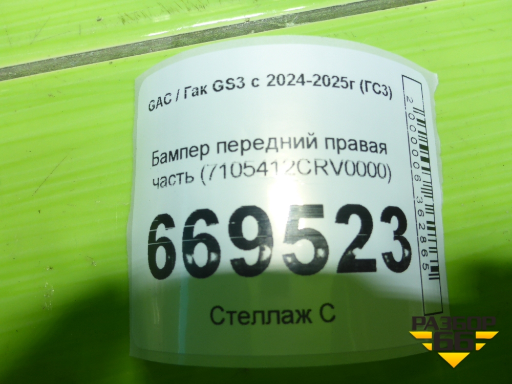 Бампер передний правая часть (7105412CRV0000) для GAC GS3 с 2024-2025г (ГС3) в Уфе