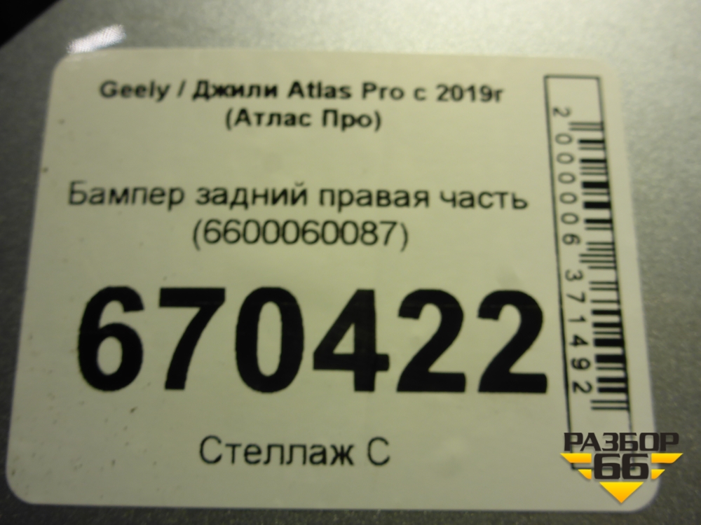 Бампер задний правая часть (6600060087) для Geely Atlas Pro с 2019г (Атлас Про) в Уфе