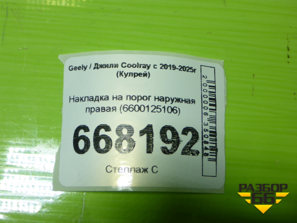 Накладка на порог наружная правая (6600125106) для Geely Coolray с 2019-2025г (Кулрей) в Уфе