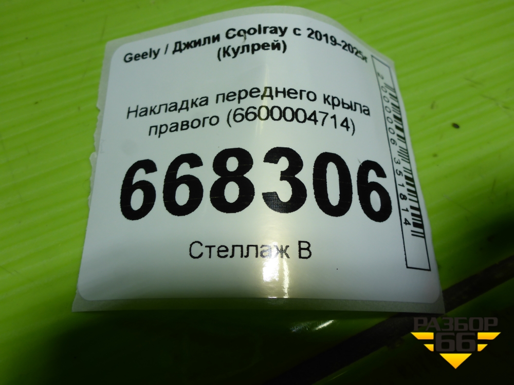 Накладка переднего крыла правого (6600004714) для Geely Coolray с 2019-2025г (Кулрей) в Уфе