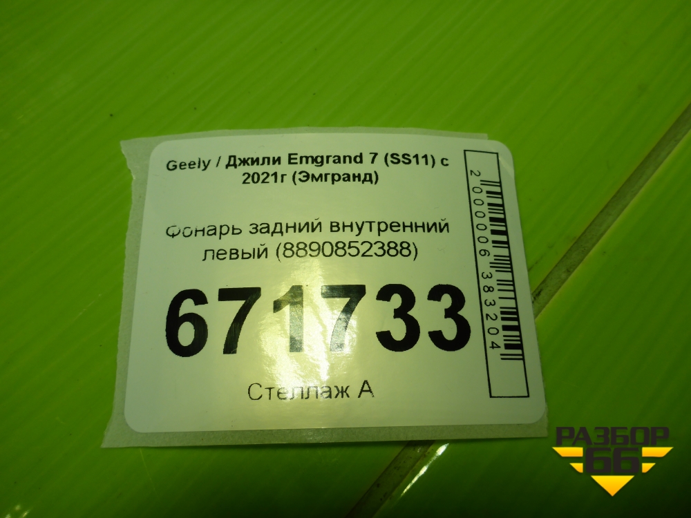 Фонарь задний внутренний левый (8890852388) для Geely Emgrand 7 (SS11) с 2021г (Эмгранд) в Уфе