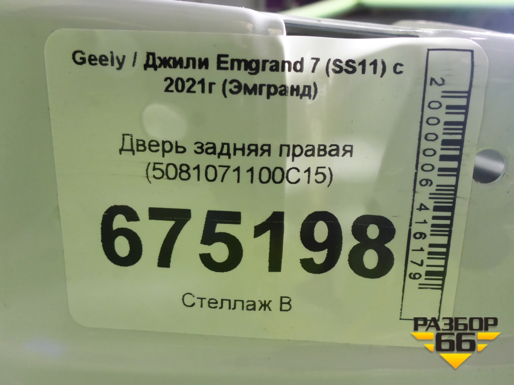 Дверь задняя правая (5081071100C15) для Geely Emgrand 7 (SS11) с 2021г (Эмгранд) в Уфе