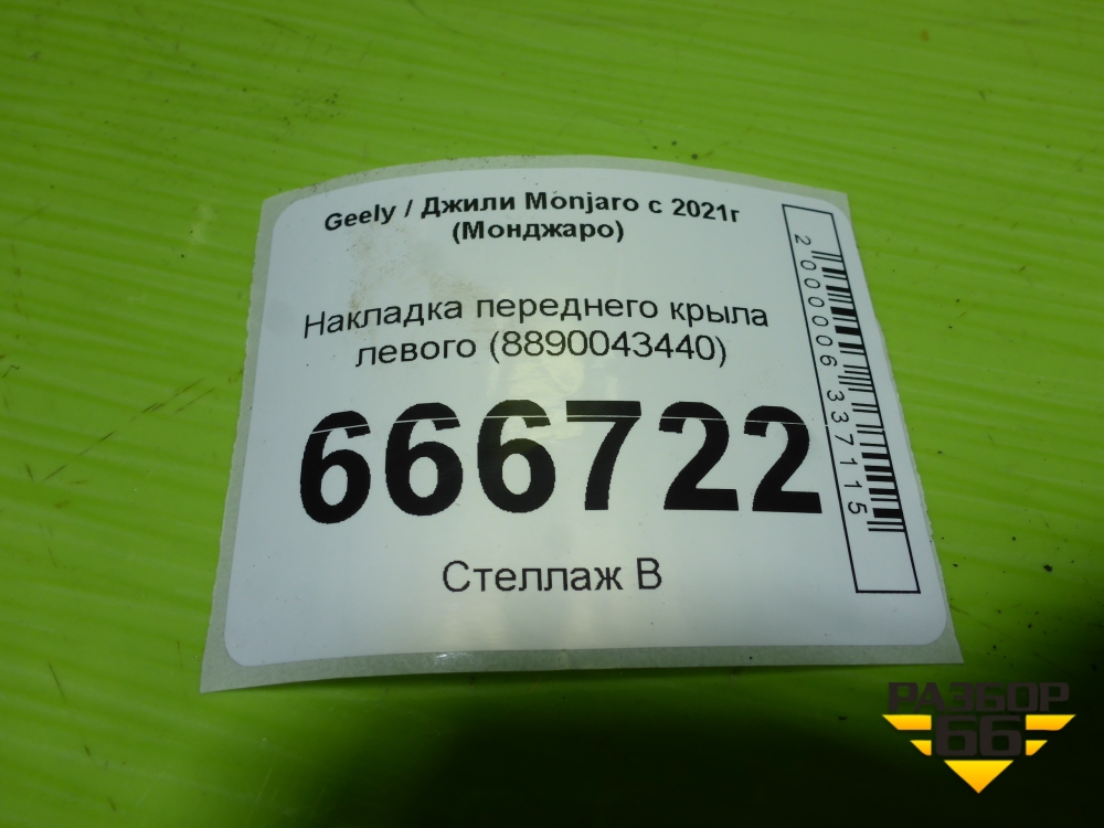 Накладка переднего крыла левого (8890043440) для Geely Monjaro с 2021г (Монджаро) в Уфе