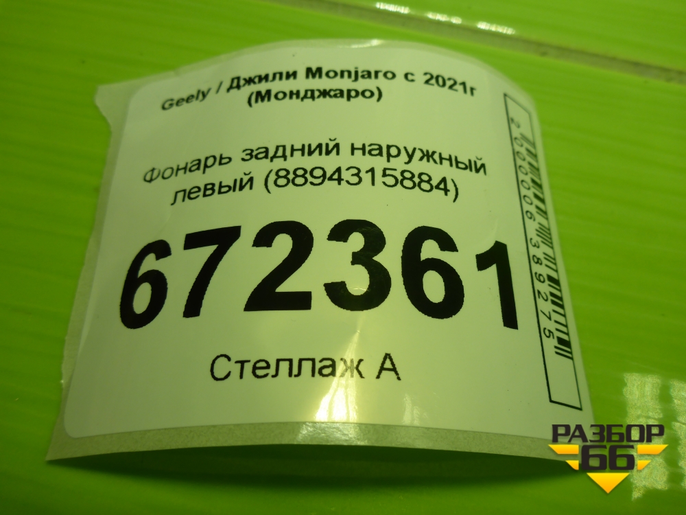 Фонарь задний наружный левый (8894315884) для Geely Monjaro с 2021г (Монджаро) в Уфе