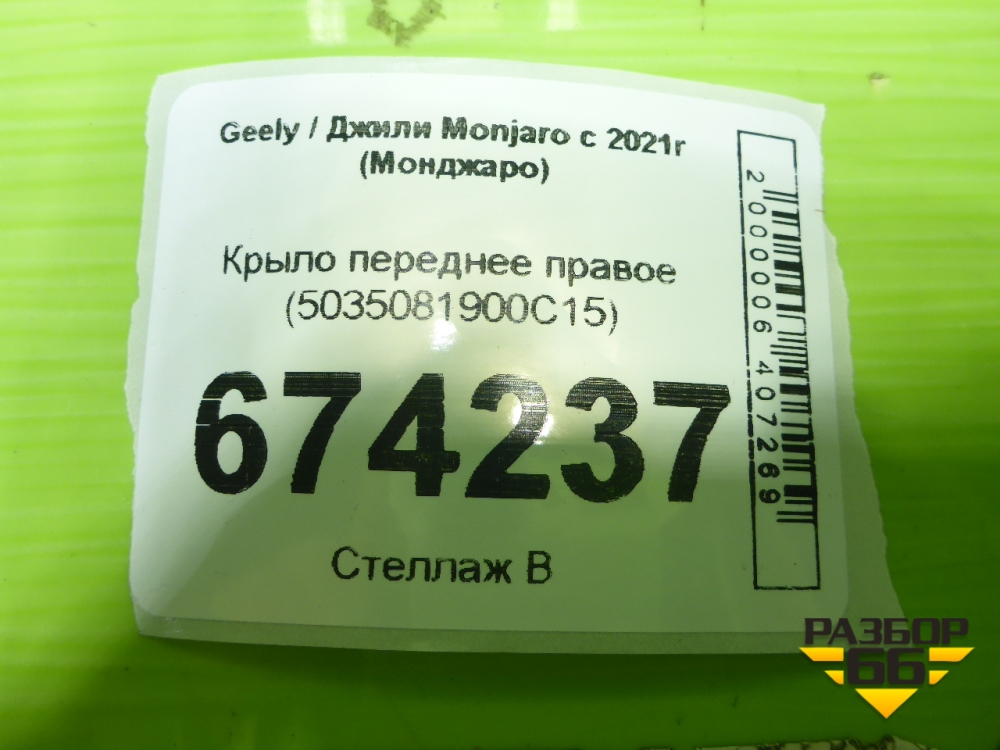 Крыло переднее правое (5035081900С15) для Geely Monjaro с 2021г (Монджаро) в Уфе