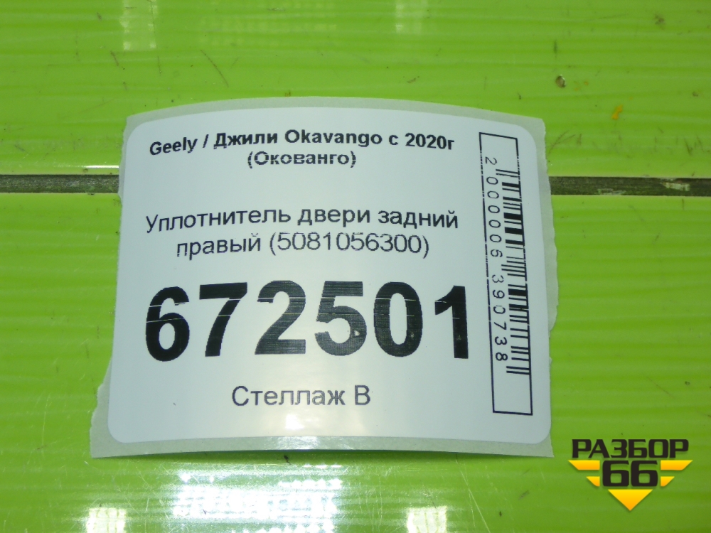 Уплотнитель двери задний правый (5081056300) для Geely Okavango с 2020г (Окованго) в Уфе