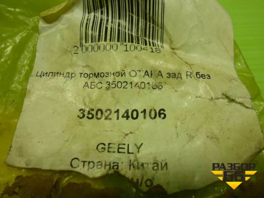 Цилиндр тормозной задний (правый без ABS) (3502140106) для Geely Otaka с 2006г (Отака) в Уфе