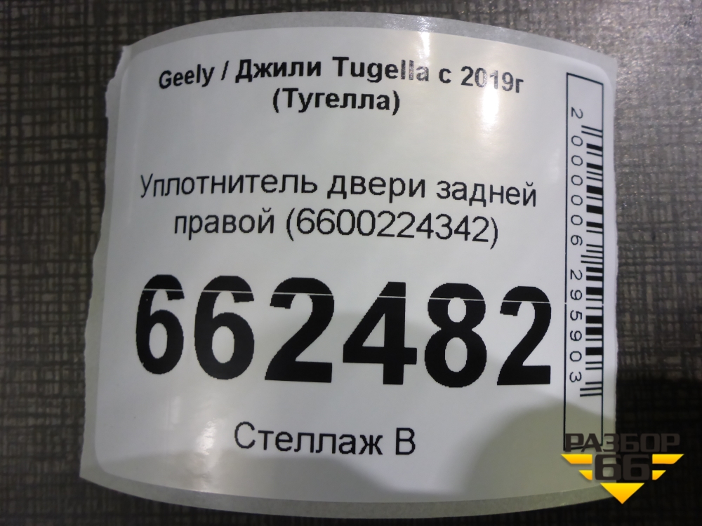 Уплотнитель двери задней правой (6600224342) для Geely Tugella с 2019г (Тугелла) в Уфе