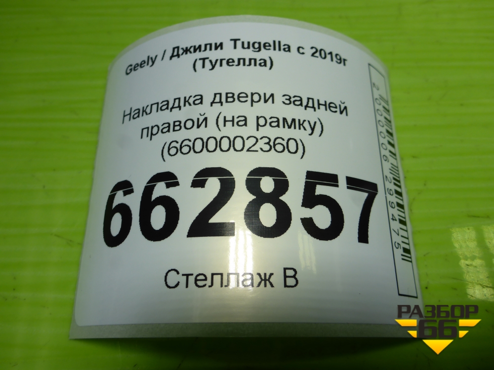 Накладка двери задней правой (на рамку) (6600002360) для Geely Tugella с 2019г (Тугелла) в Уфе