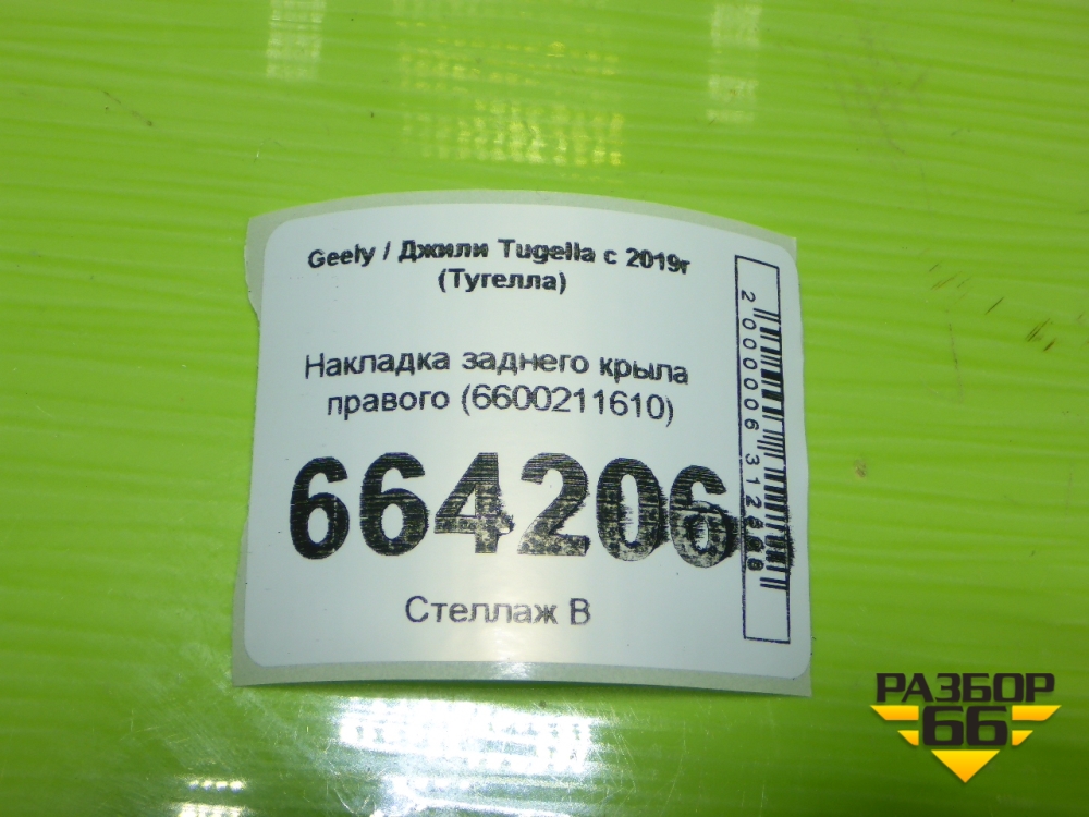 Накладка заднего крыла правого (6600211610) для Geely Tugella с 2019г (Тугелла) в Уфе