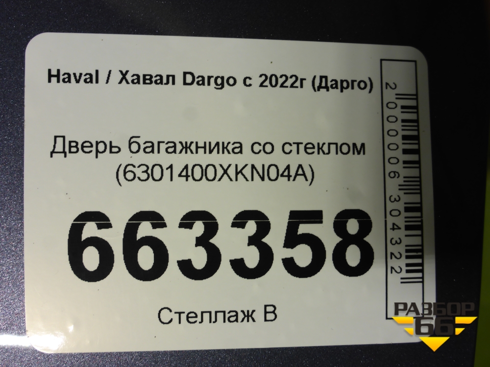 Дверь багажника со стеклом (6301400XKN04A) для Haval Dargo с 2022г (Дарго) в Уфе