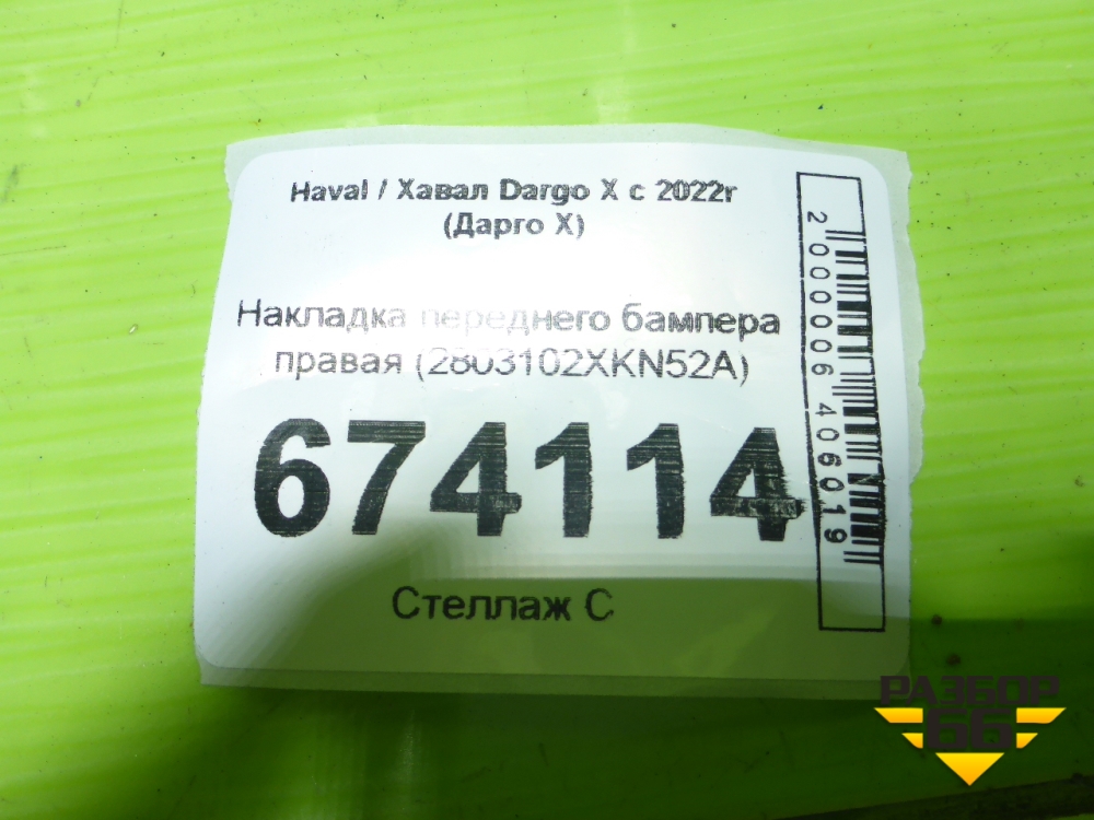 Накладка переднего бампера правая (2803102XKN52A) для Haval Dargo X с 2022г (Дарго Х) в Уфе