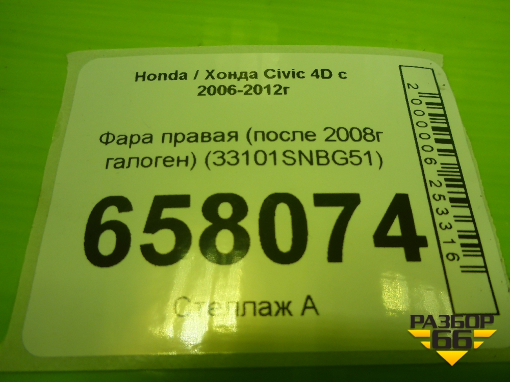 Фара правая (после 2008г галоген) (33101SNBG51) для Honda Civic 4D с 2005-2011г (Цивик) в Уфе