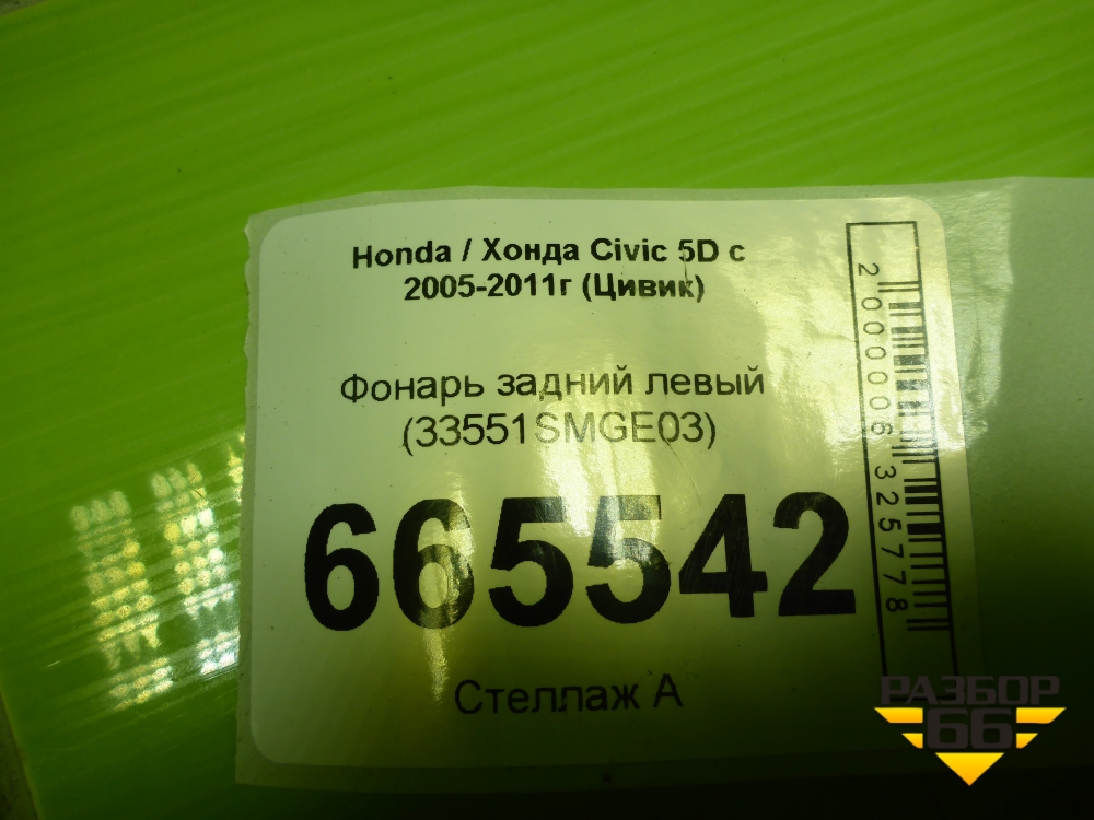 Фонарь задний левый (33551SMGE03) для Honda Civic 5D с 2005-2011г (Цивик) в Уфе
