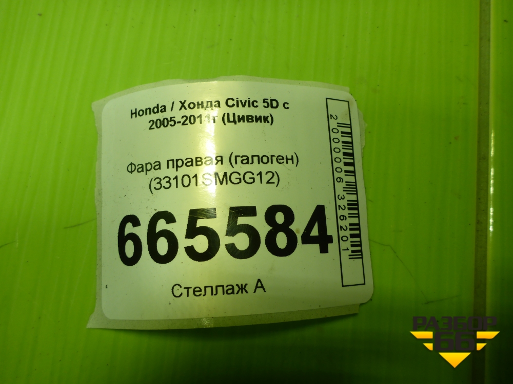 Фара правая (ксенон с блоком без лампы) (33101SMGG12) для Honda Civic 5D с 2005-2011г (Цивик) в Уфе