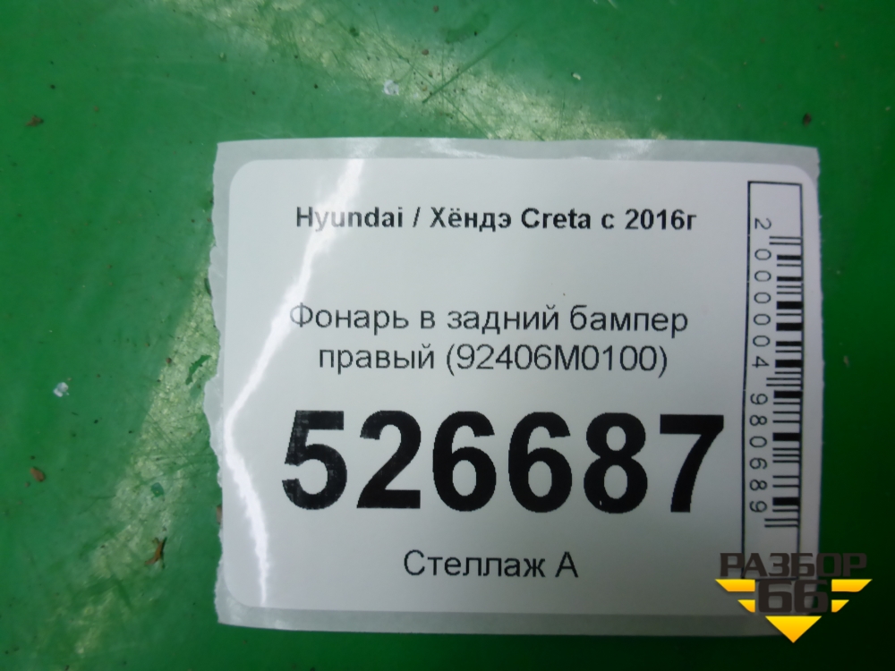 Фонарь в задний бампер правый (92406M0100) для Hyundai Creta с 2016г (Крета) в Уфе