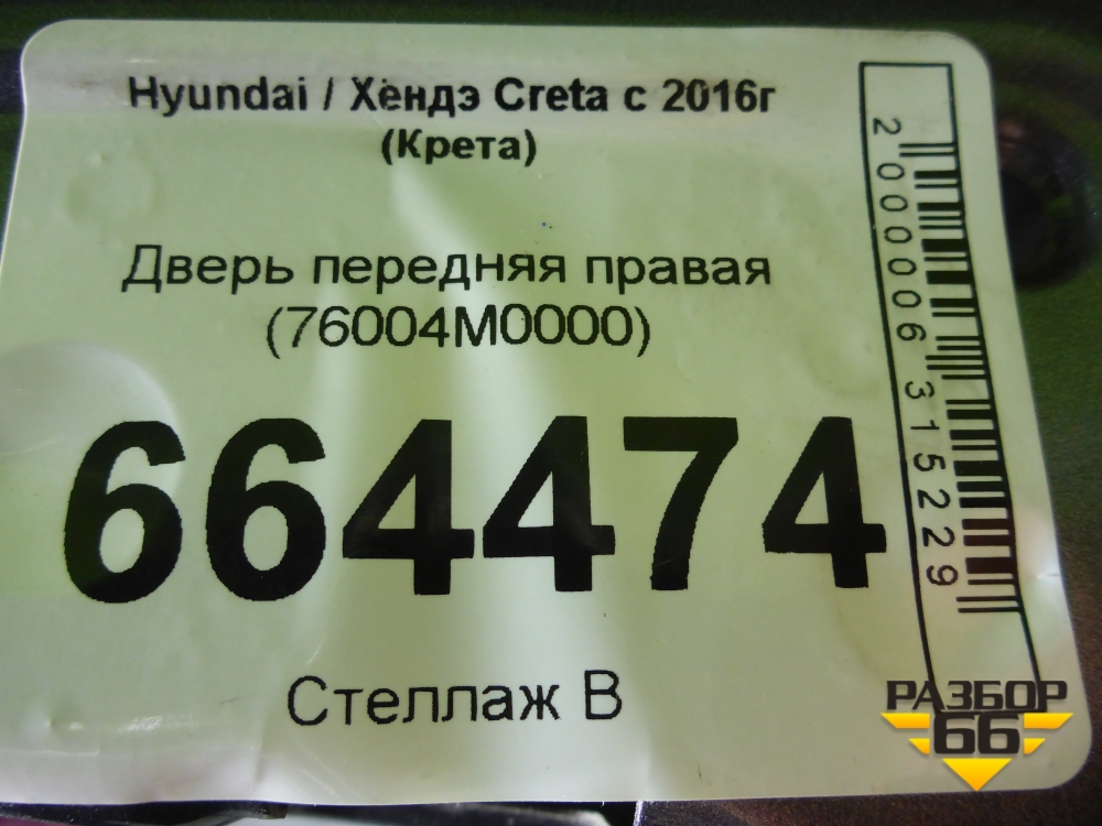 Дверь передняя правая (76004M0000) для Hyundai Creta с 2016-2021г (Крета) в Уфе