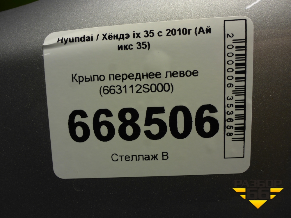Крыло переднее левое (663112S000) для Hyundai ix 35 с 2010г (Ай икс 35) в Уфе